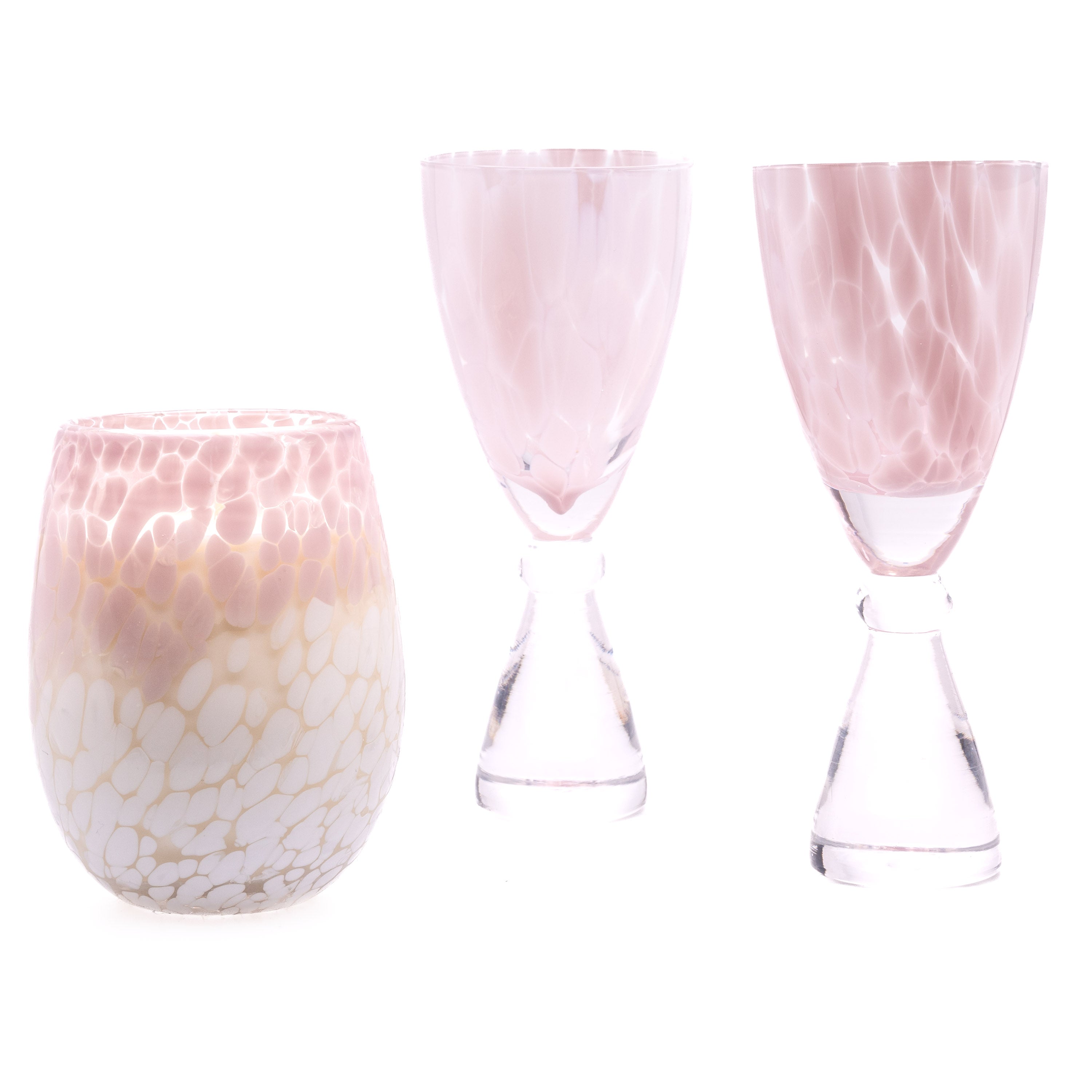 Champagne Glass and Stemless Wine Candle Set: Blush Pink and White