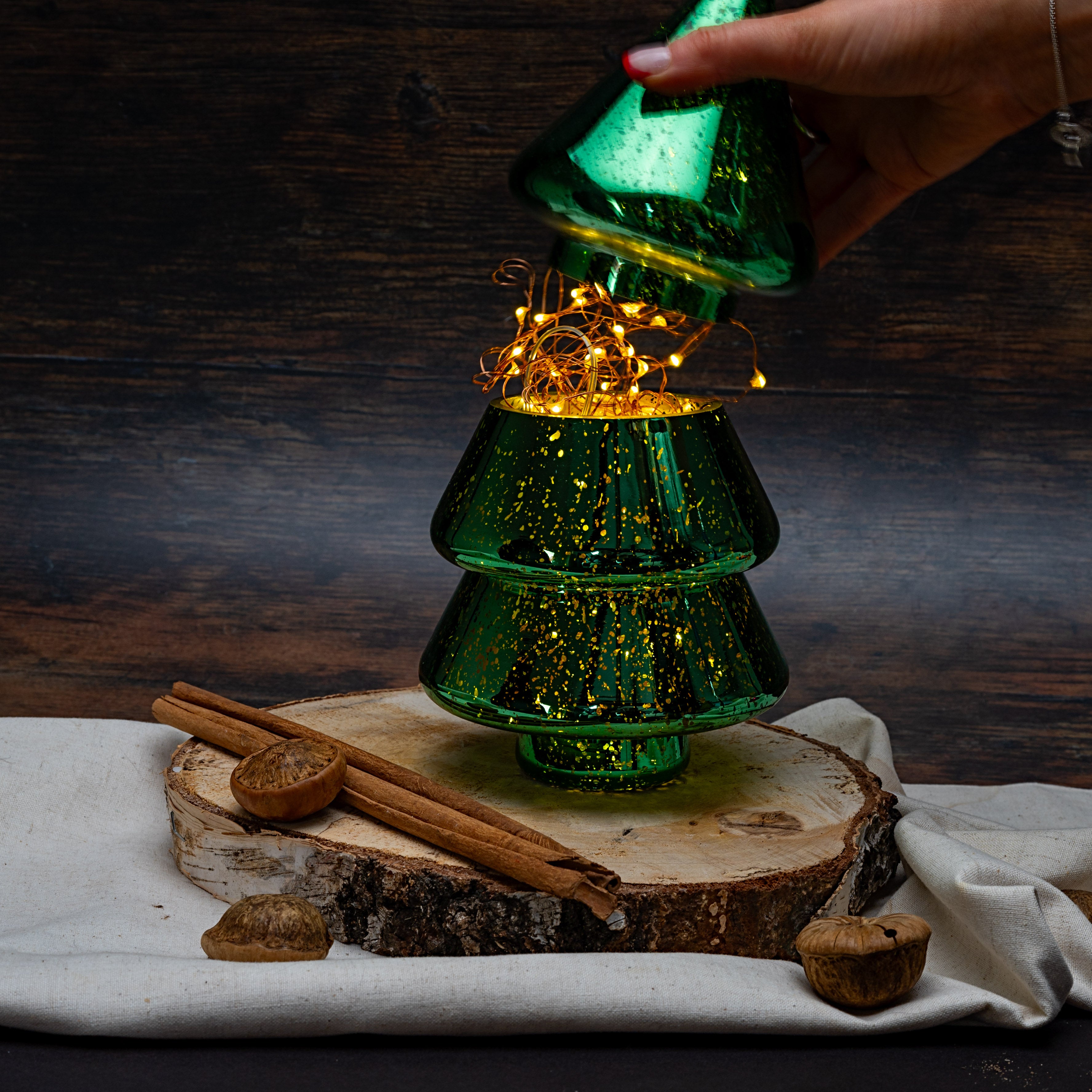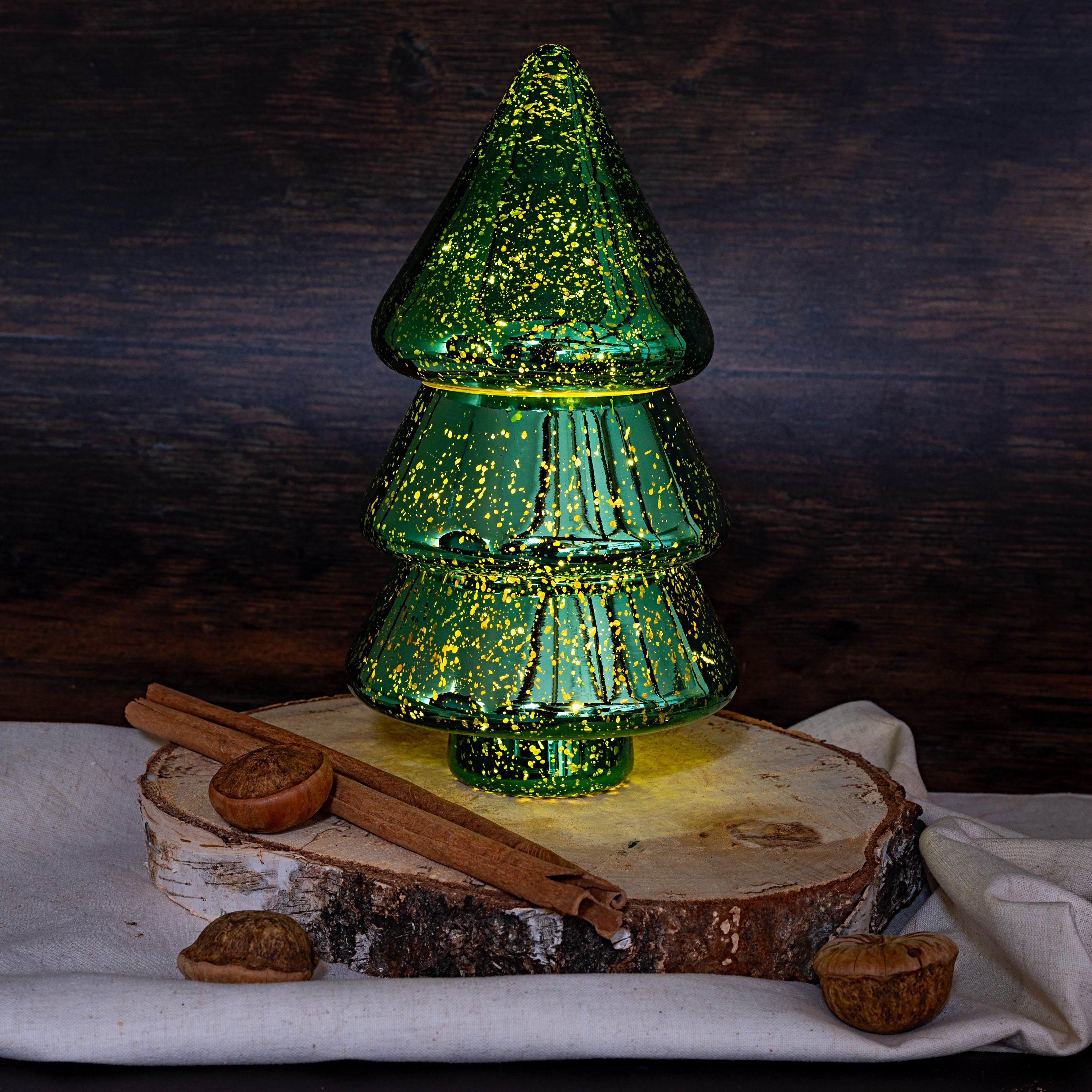 Glasshouse Wholesale Interiors & Trade – Glass Christmas Tree Decor in Dark Metallic Green
