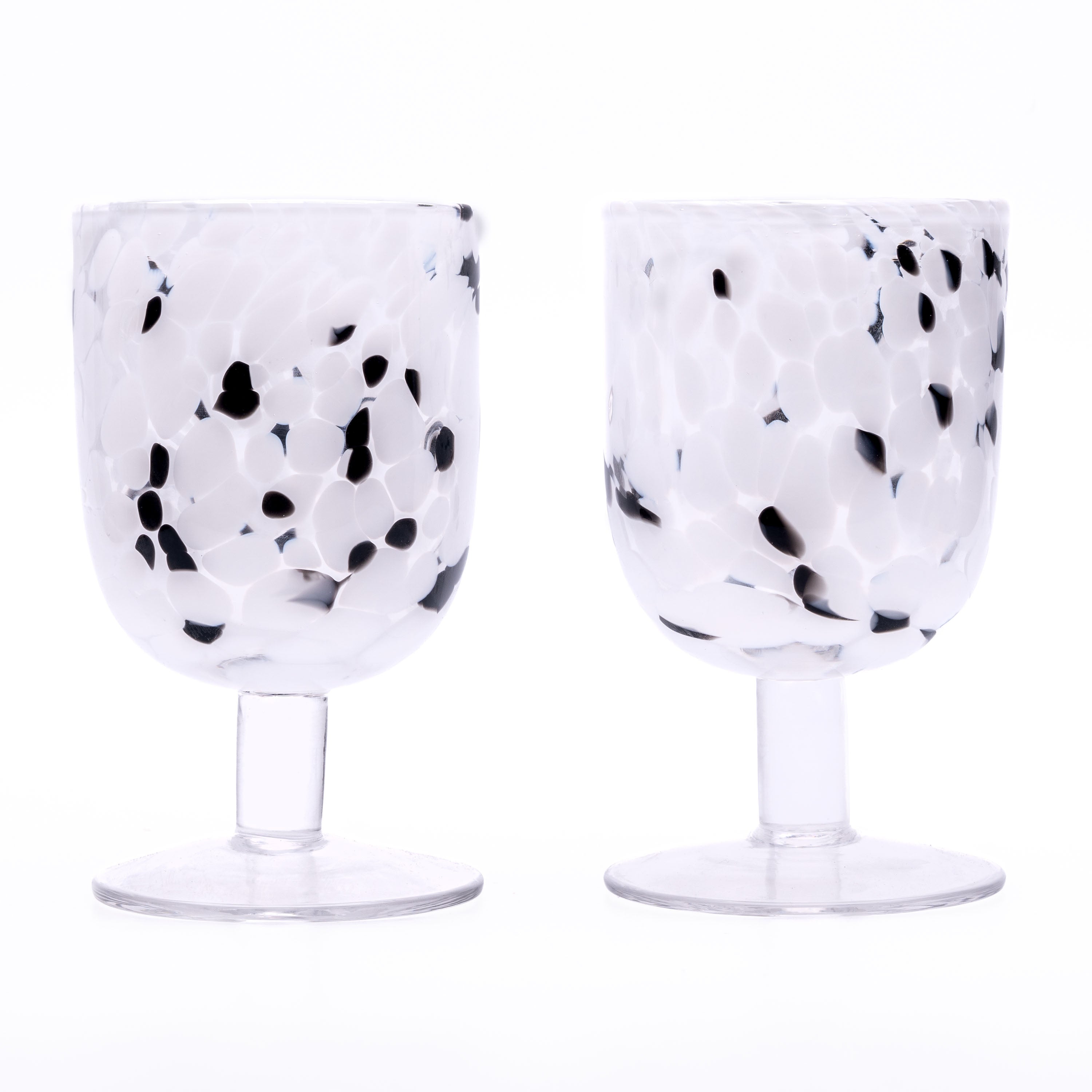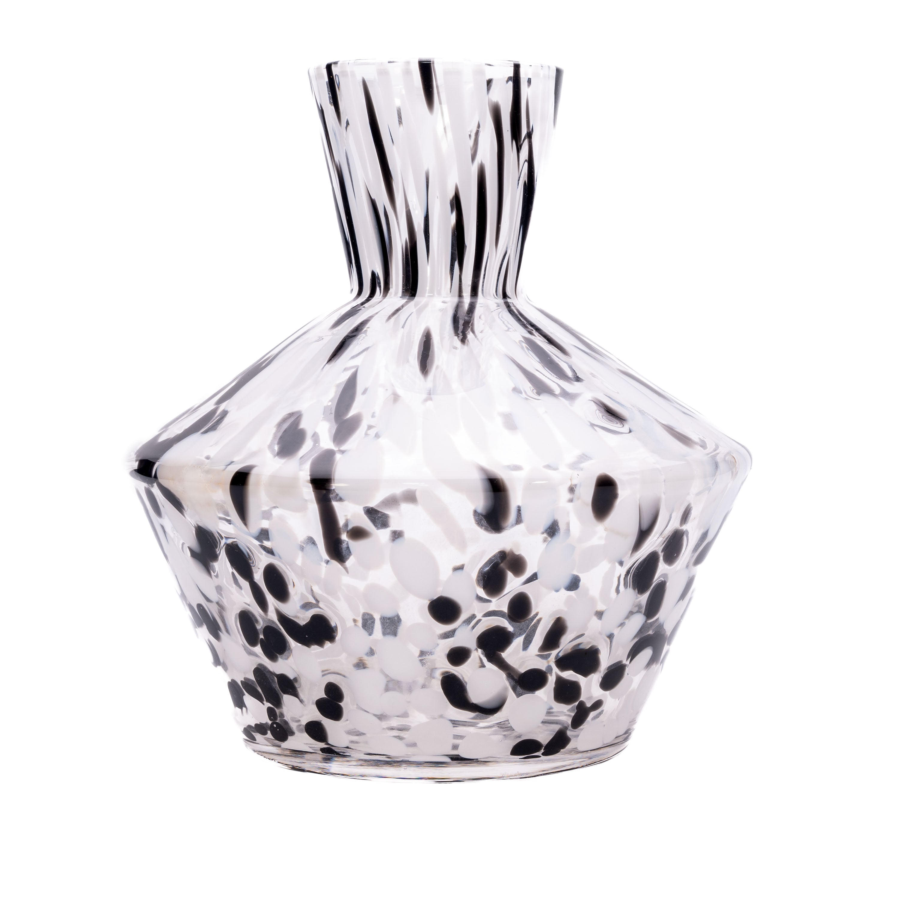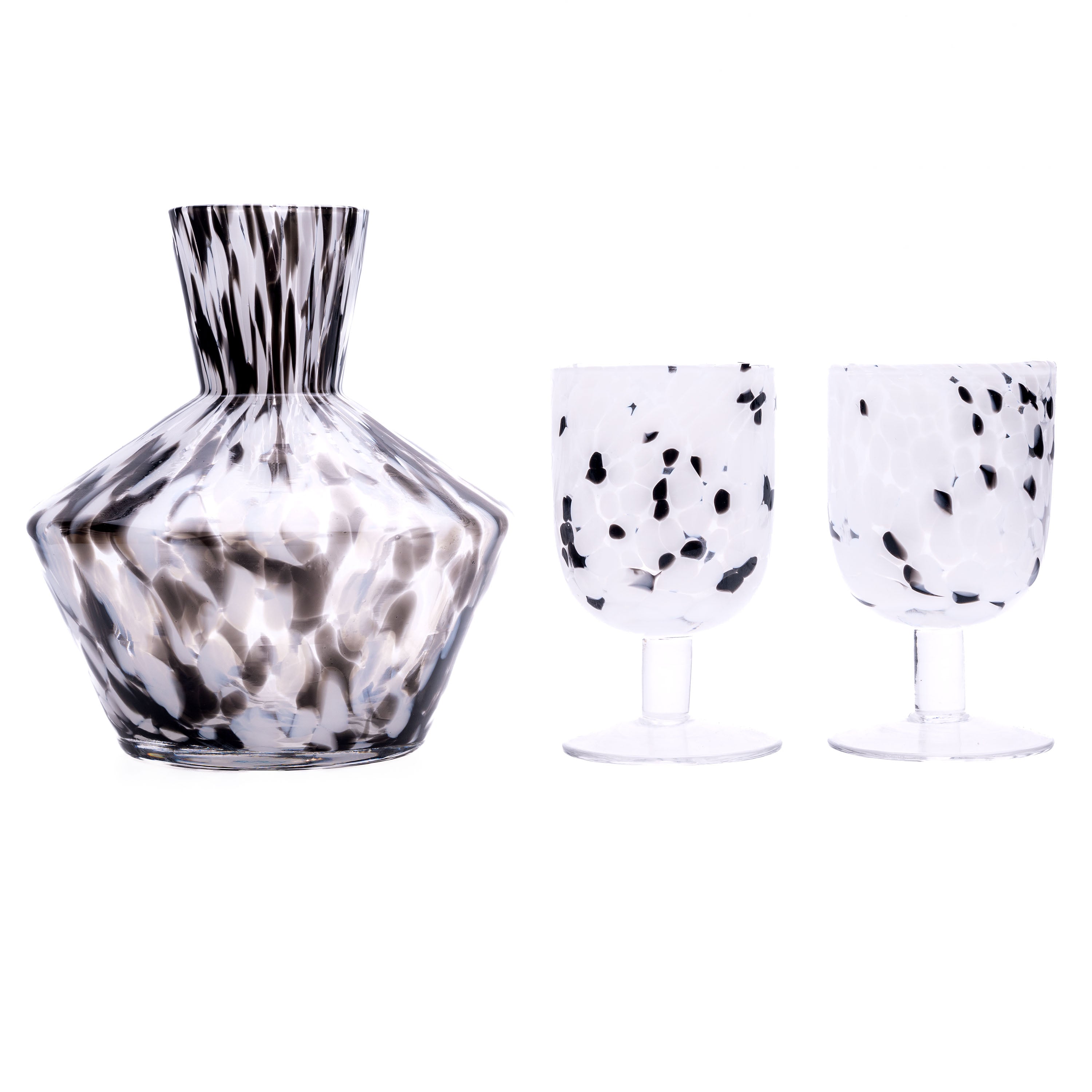 This Dalmatian print decanter and two matching wine glasses sets add bold style to any wine lover's collection. The striking black-and-white design offers a unique, sophisticated look. Ideal for home decor, interior designers, and gift businesses, this set makes a memorable gift or dining accessory. With no minimum order quantity, it is perfect for stocking your collection or offering to clients. Ideal for contemporary home decor and wine accessories.