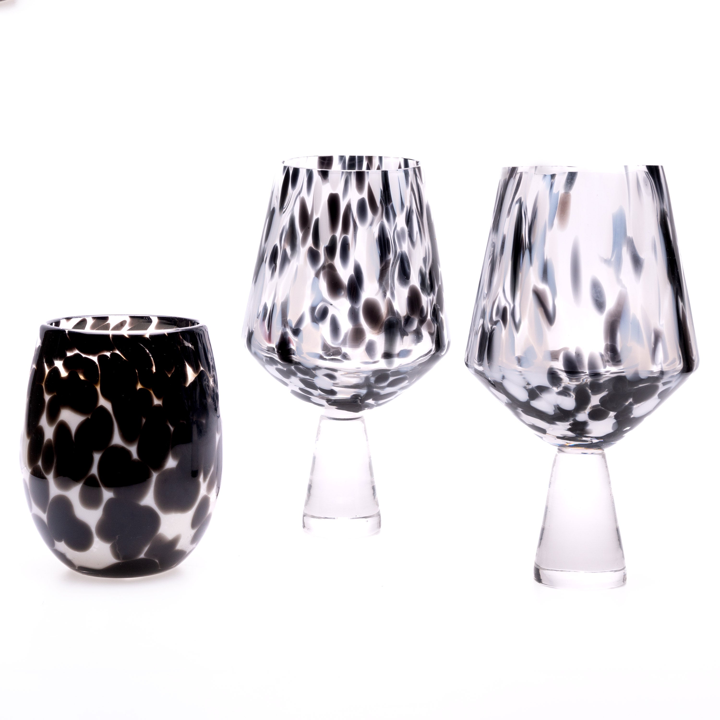 Glasshouse Wholesale Interiors and Trade - Large drinking glass and candle set in Dalmatian print.