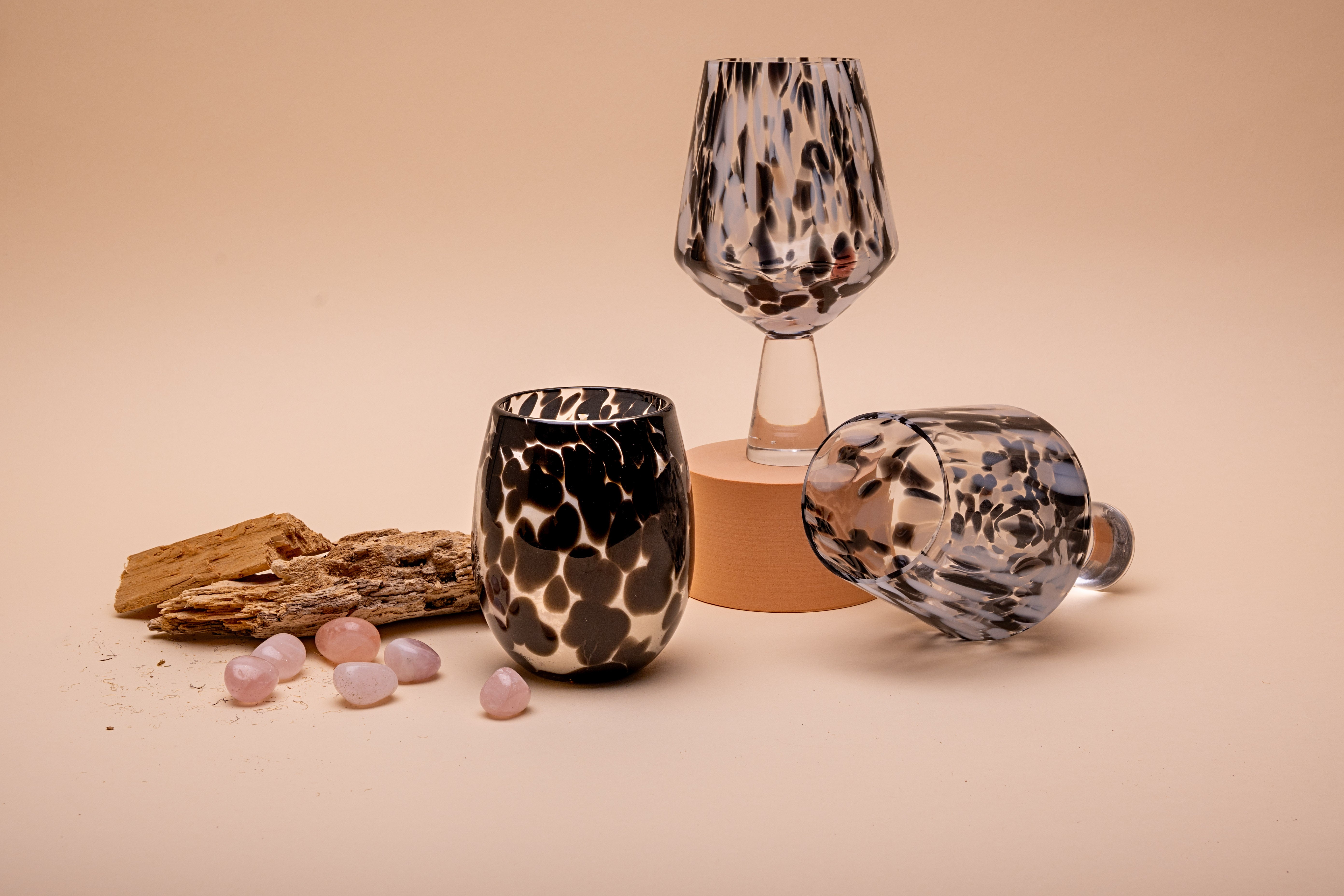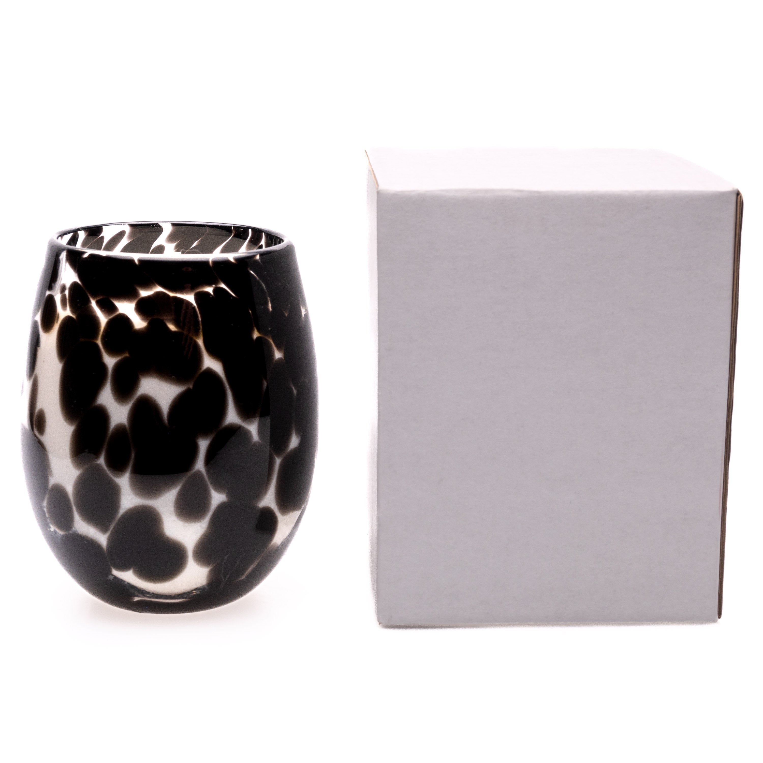Stemless Wine Glass Candle : Cheetah Print (Cedarwood and Tonka Bean)