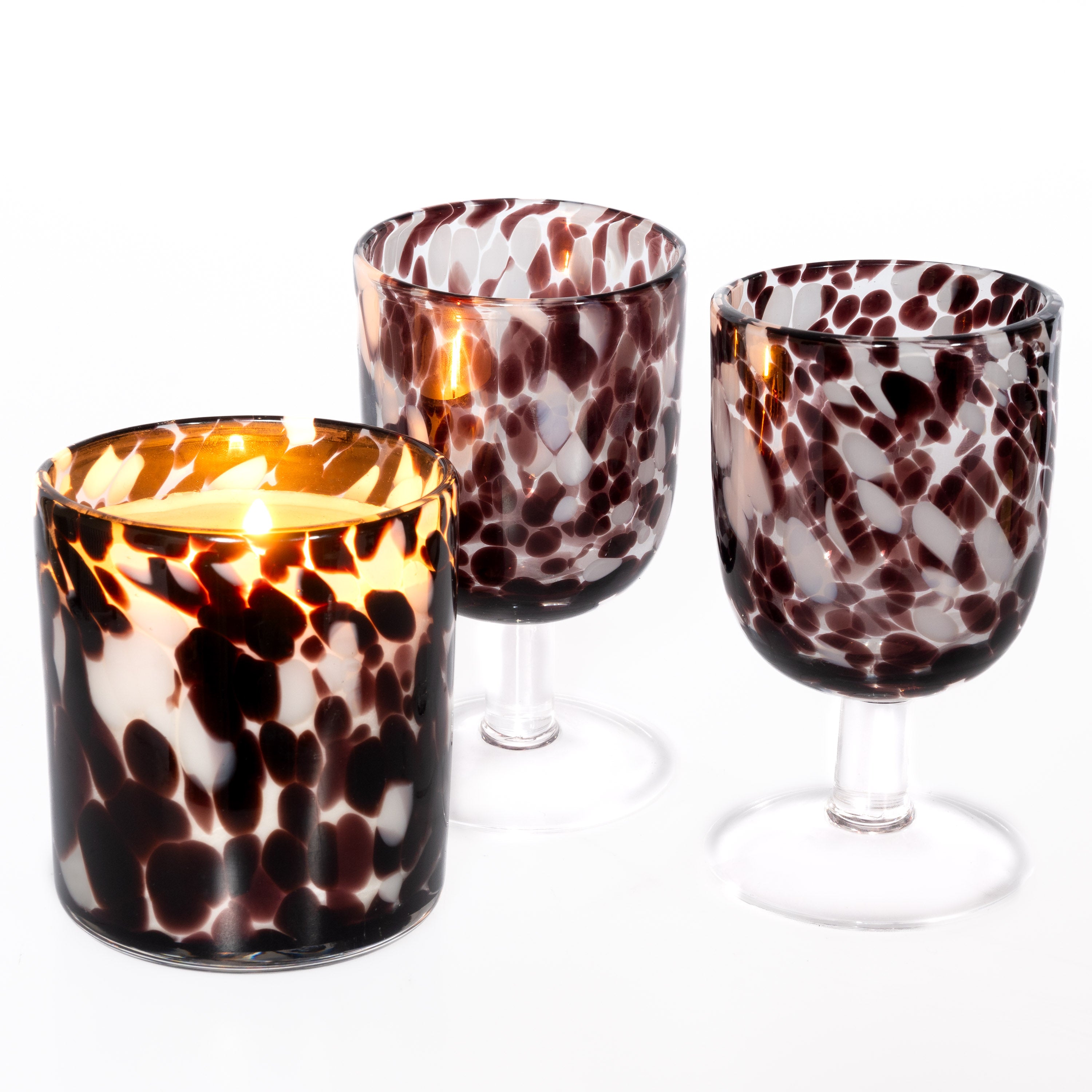 Short Stem Wine Glass and Fleck Print Candle : Merlot
