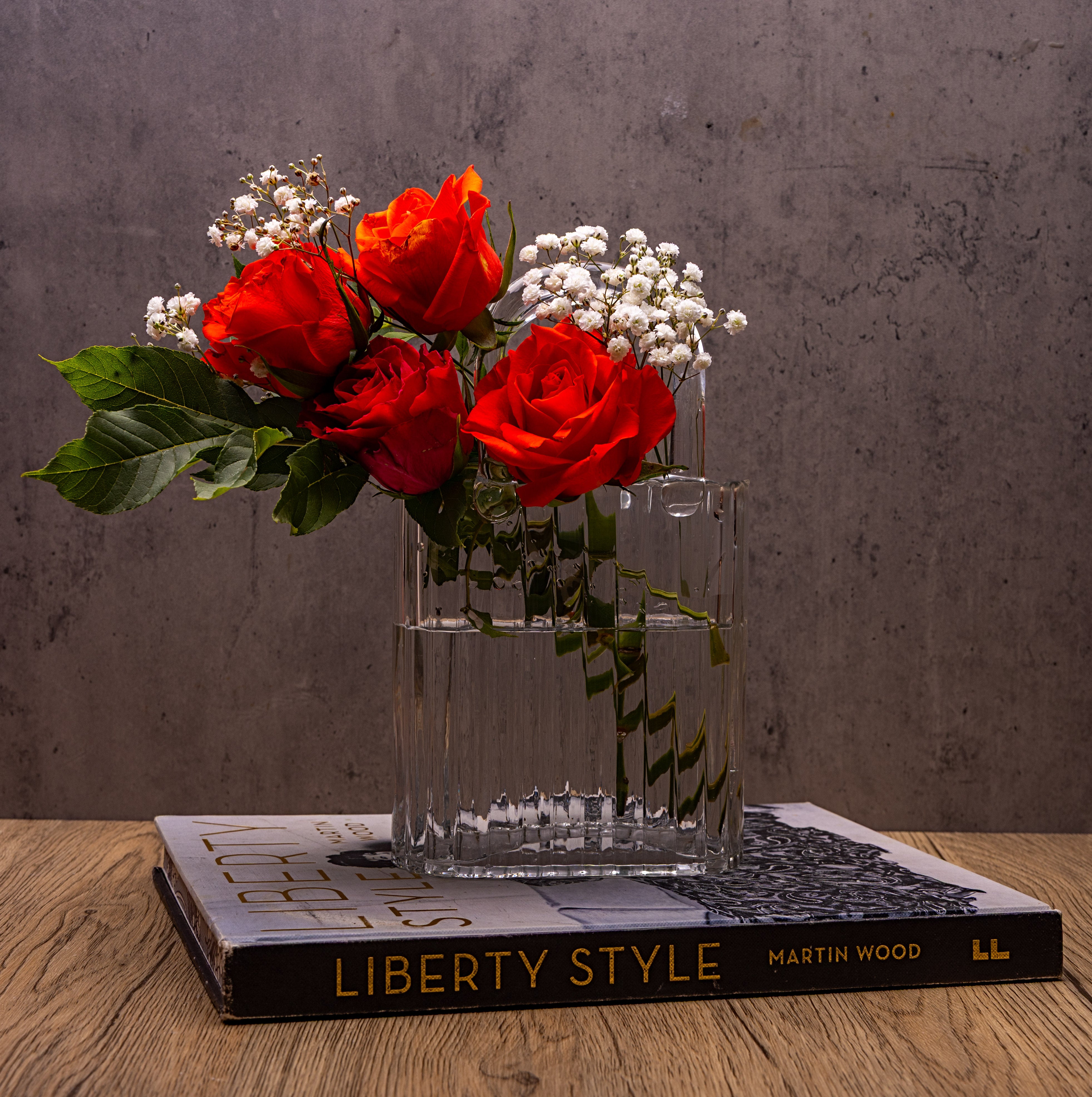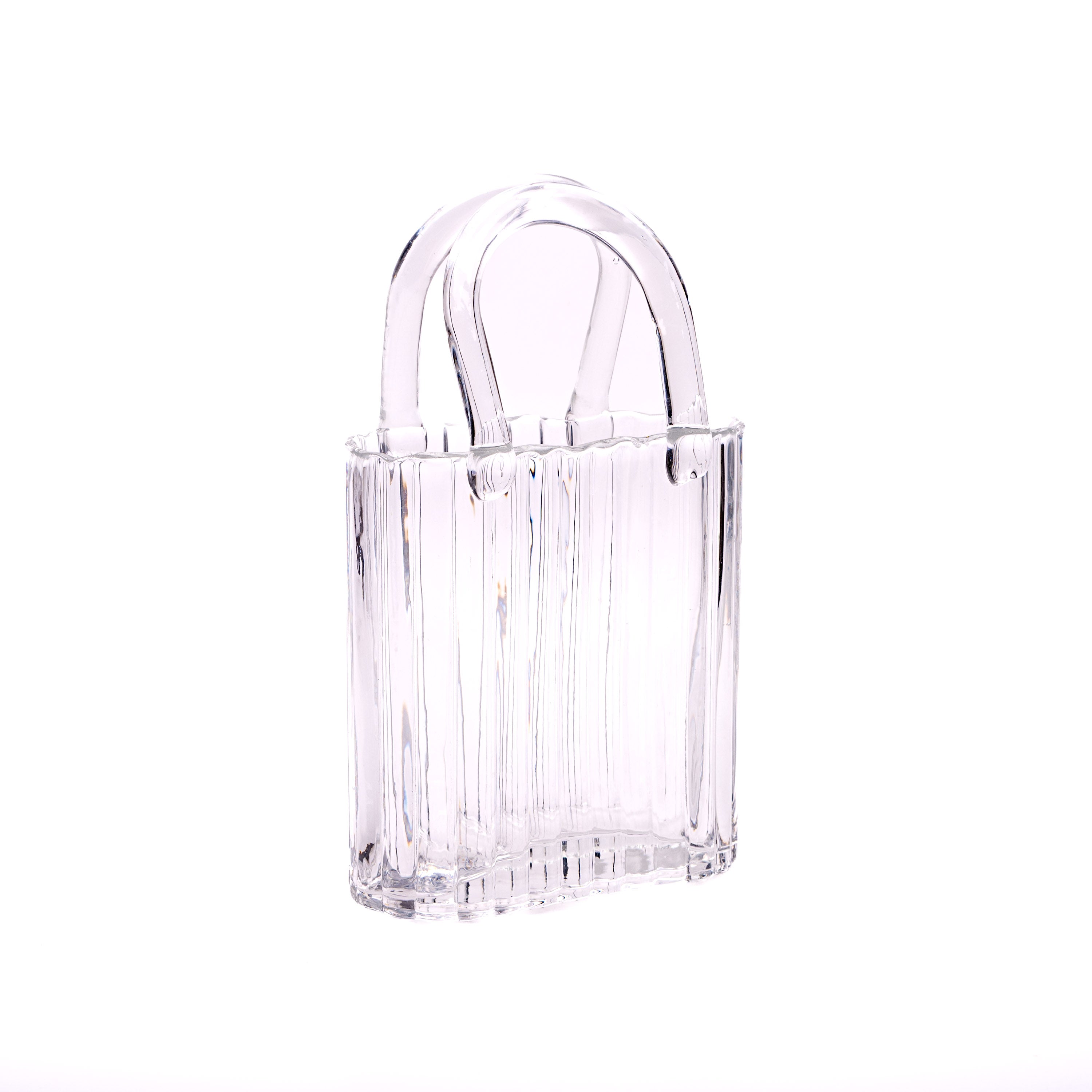 Style: Handbag-shaped vase crafted from transparent ribbed glass