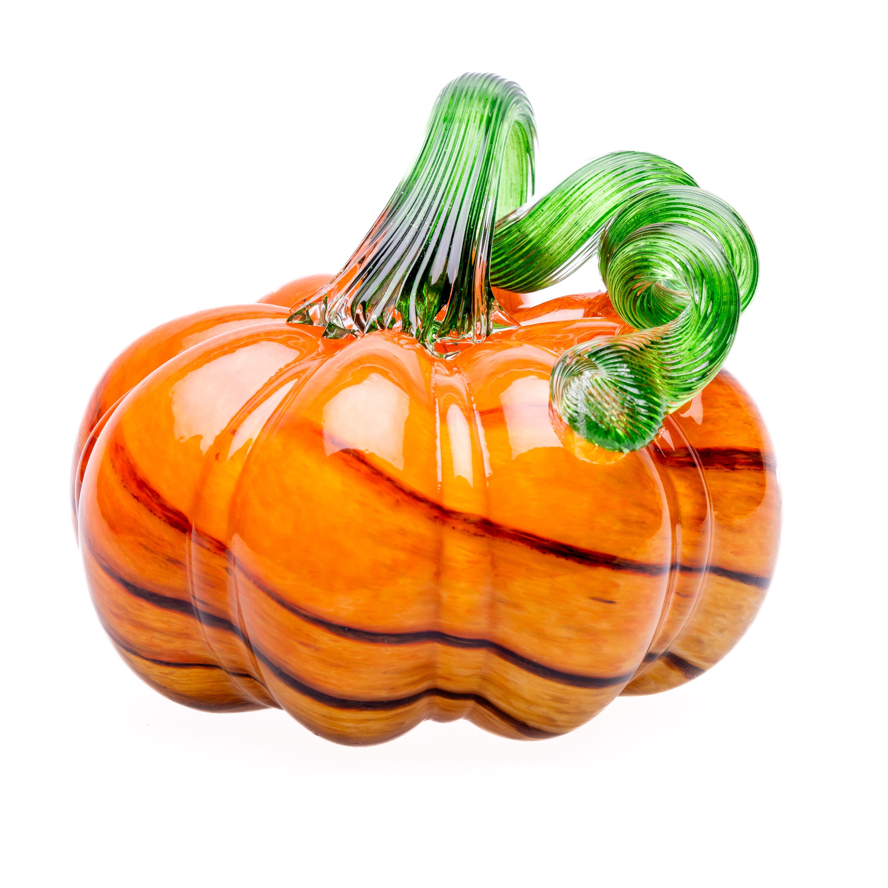 Medium Glass Pumpkin – Orange with Brown Stripes