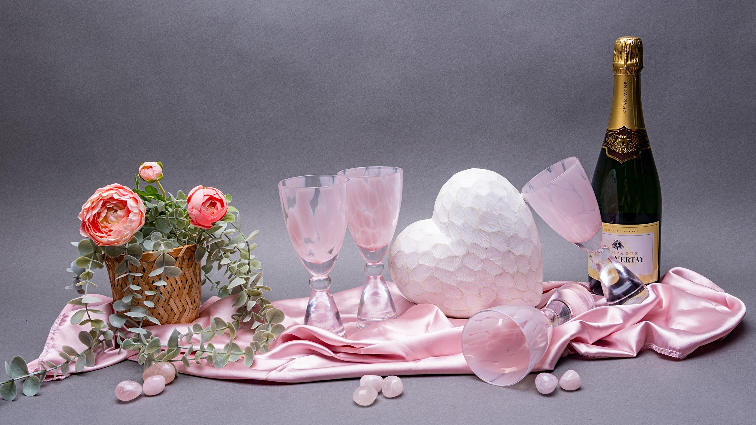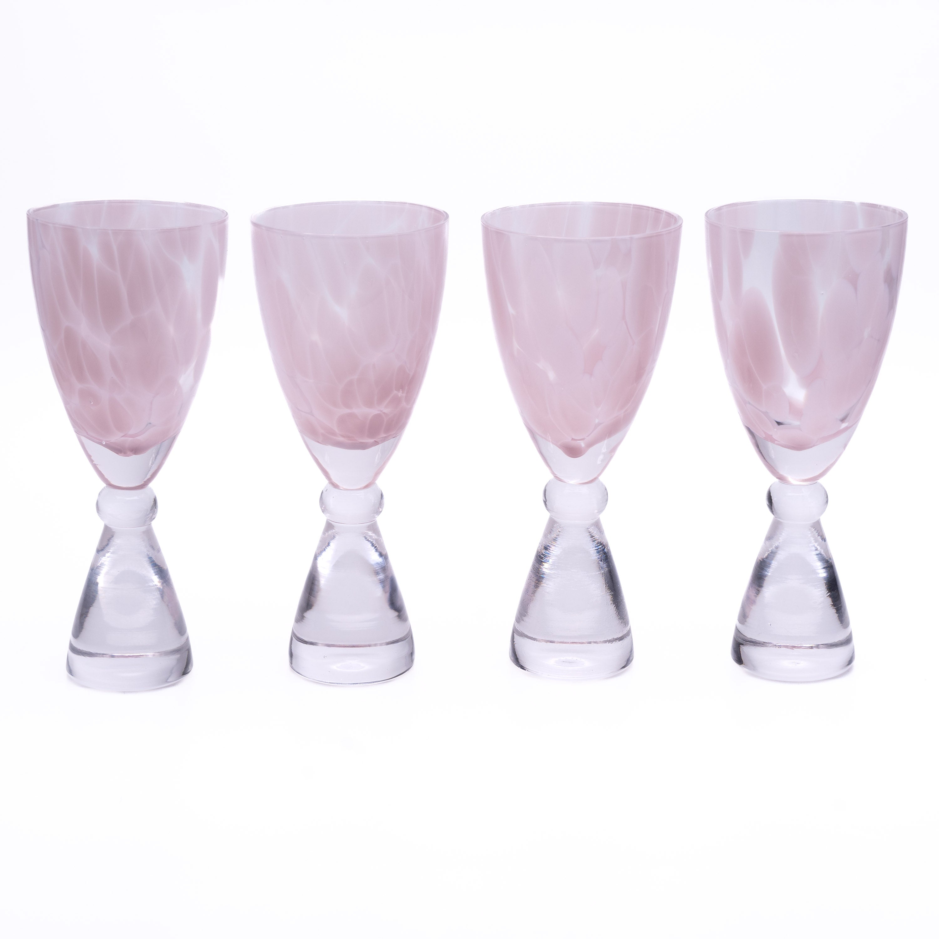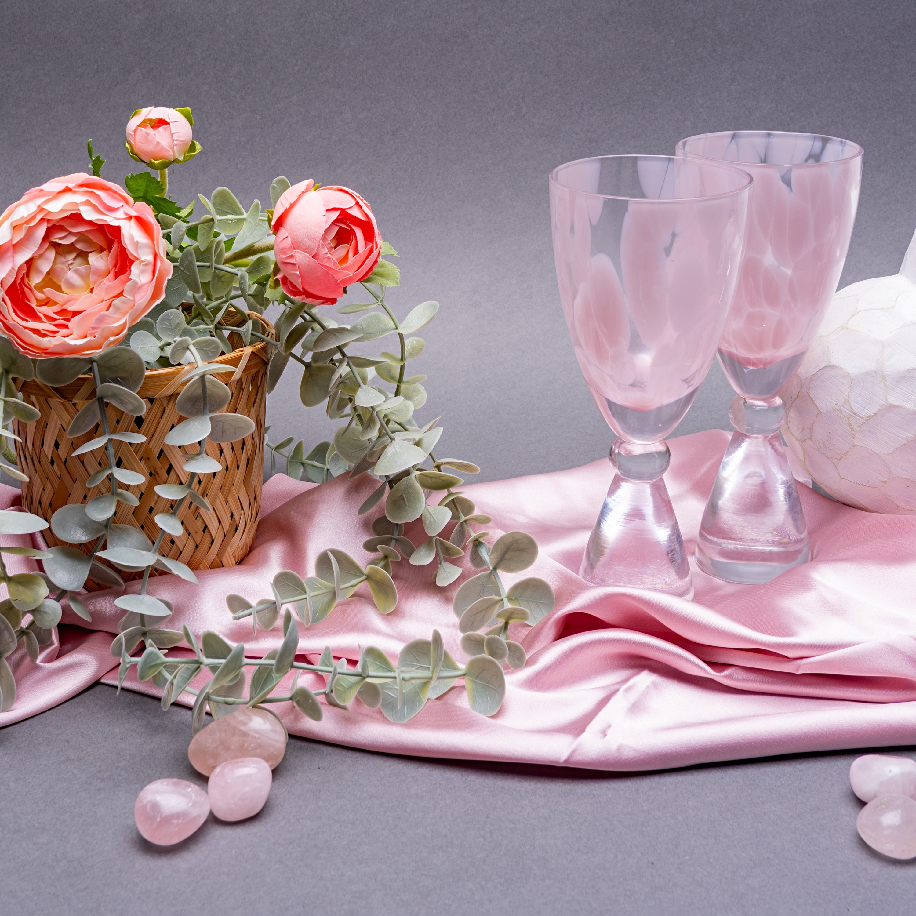 Wholesale Luxury Champagne Glass Set- Boost your retail inventory with our exquisite set of four blush fleck print pink champagne glasses, available at wholesale prices. Crafted for style and durability, each glass showcases a thick stem with a unique blush pink tone fleck pattern. This vibrant color is perfect for your customers' celebrations, making these glasses ideal for upscale events and special occasions. Retailers seeking to captivate customers who appreciate elegance and sophistication will find these wholesale champagne glasses an essential addition to their selection. Don’t miss out on the opportunity to impress your clientele with these eye-catching, fashionable glasses!