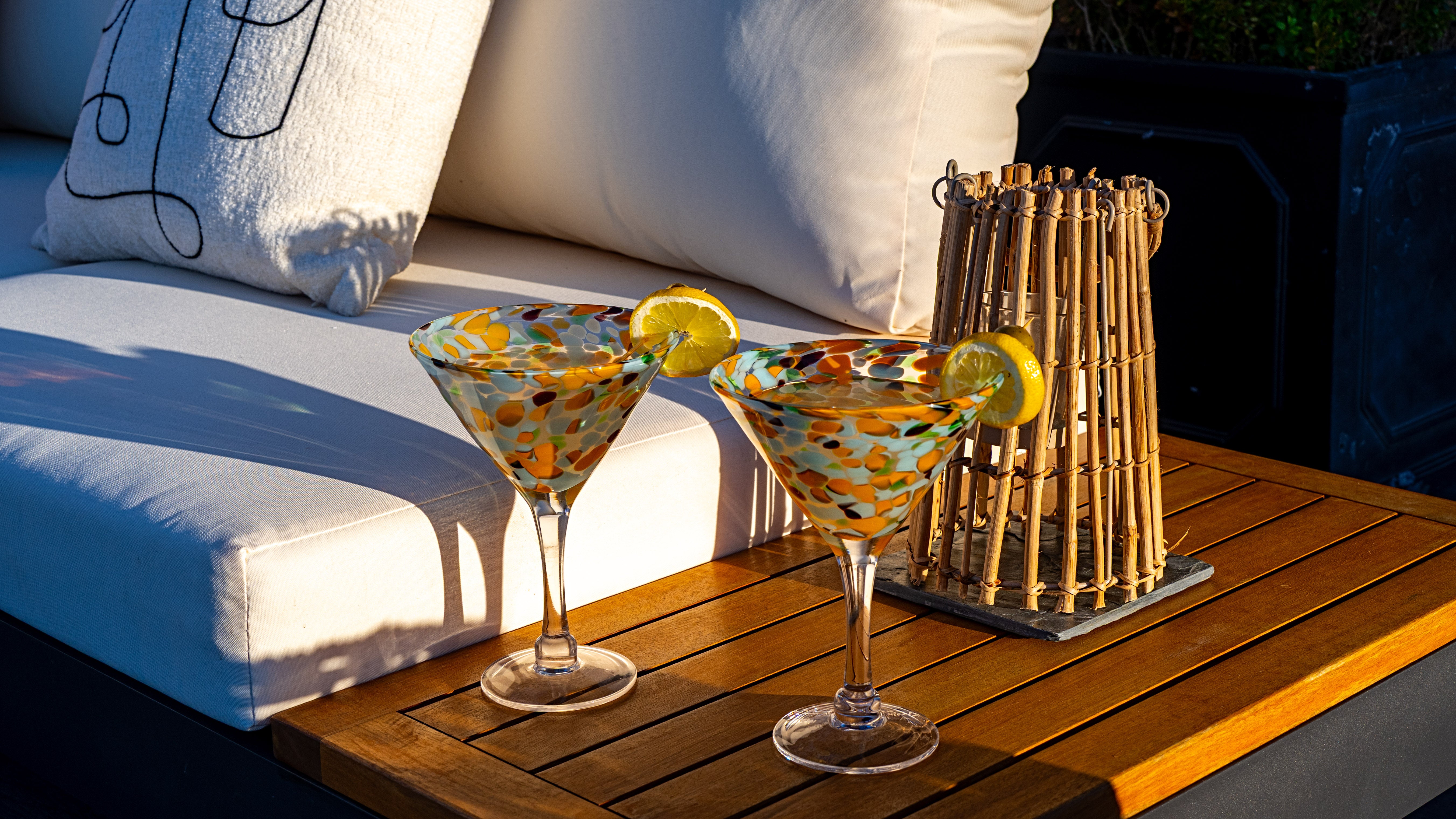 Enhance your summer home decor offerings with our vibrant set of four citrus orange martini glasses, perfect for retailers looking to attract cocktail enthusiasts. These eye-catching large martini glasses feature a stylish pattern on the body and a sleek clear stem, making them an ideal addition to any entertaining collection. Priced at wholesale, these glasses are designed for home decor retailers who want to provide their customers with the best in stylish summer drinkware. Help your clients create memorable summer gatherings with our stunning martini glasses!